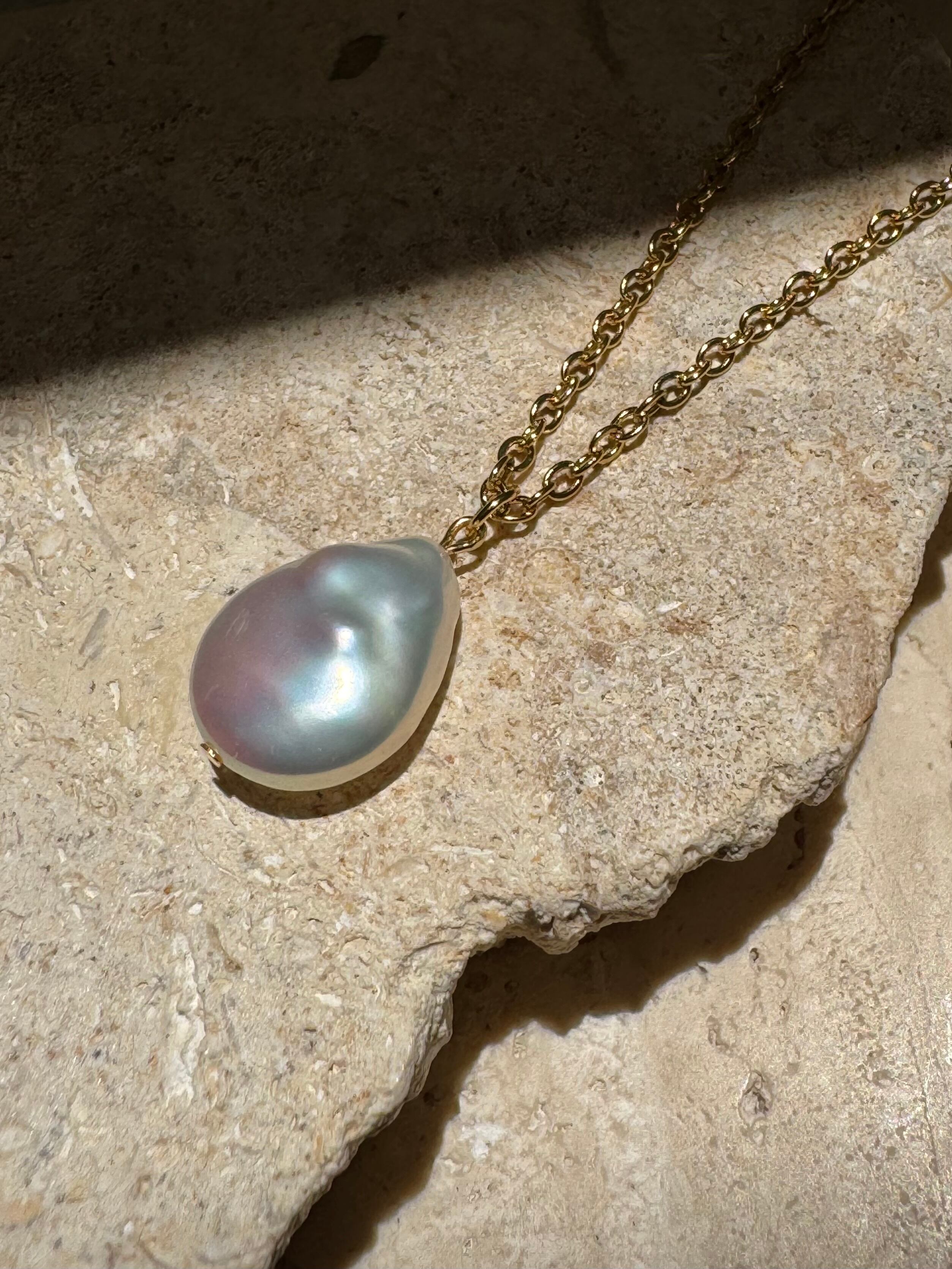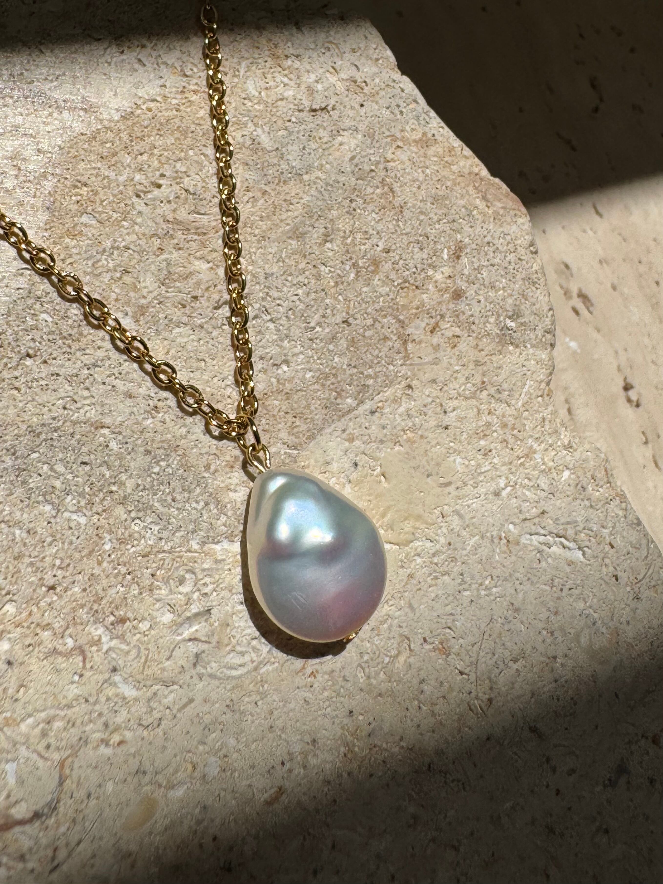 独特な自然のフォルムが可愛らしい、ドロップコインパールのネックレスです。