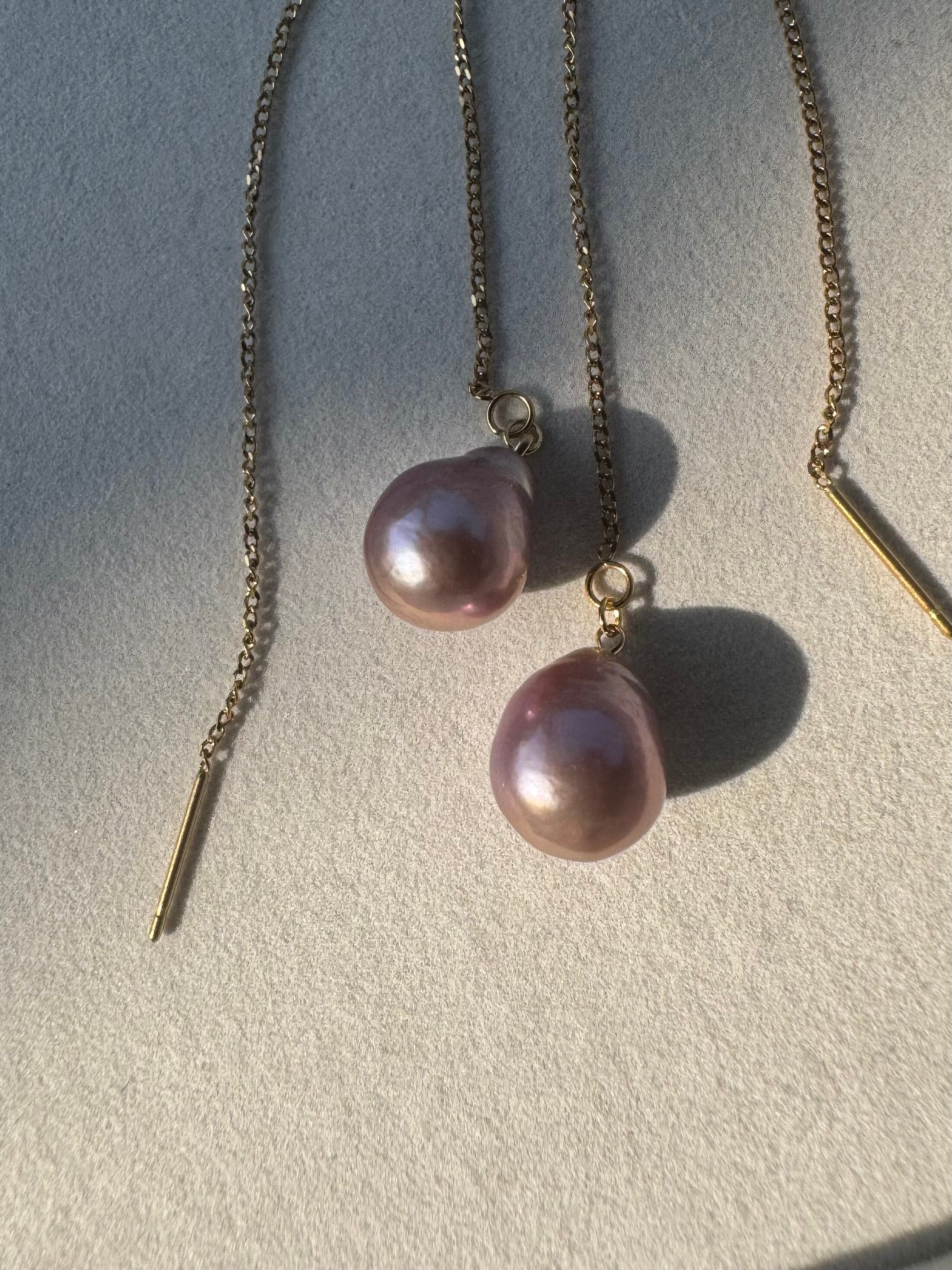 淡水真珠バロックパールのロングアメリカンピアスです。