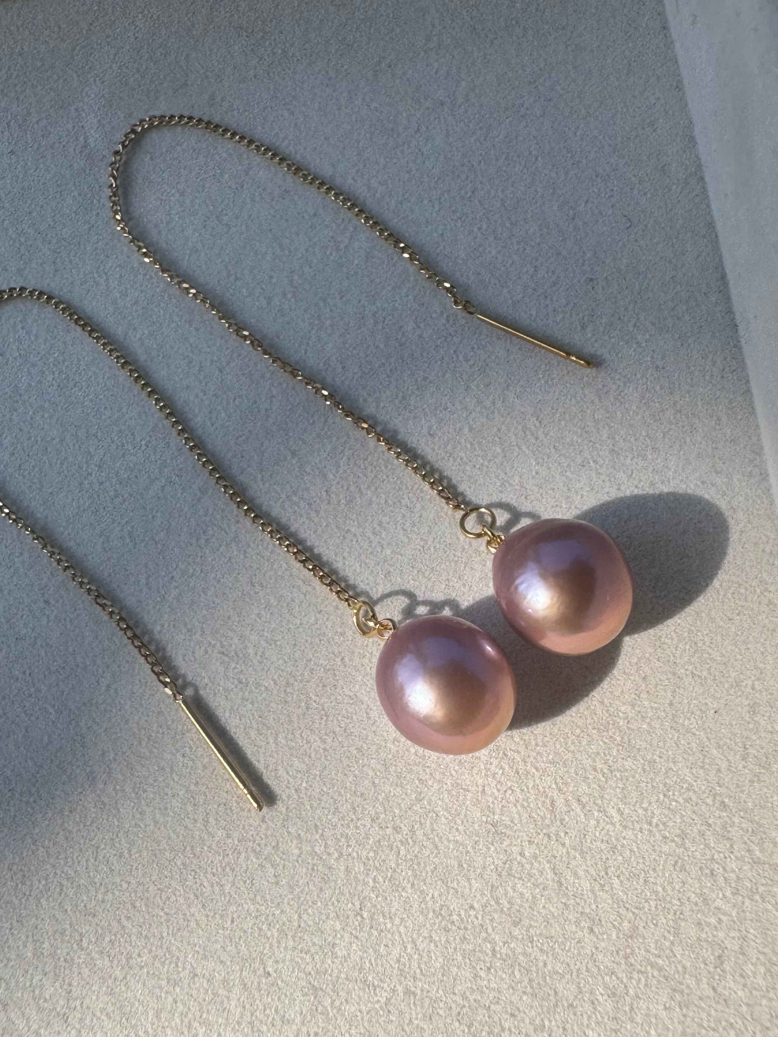 淡水真珠バロックパールのロングアメリカンピアスです。