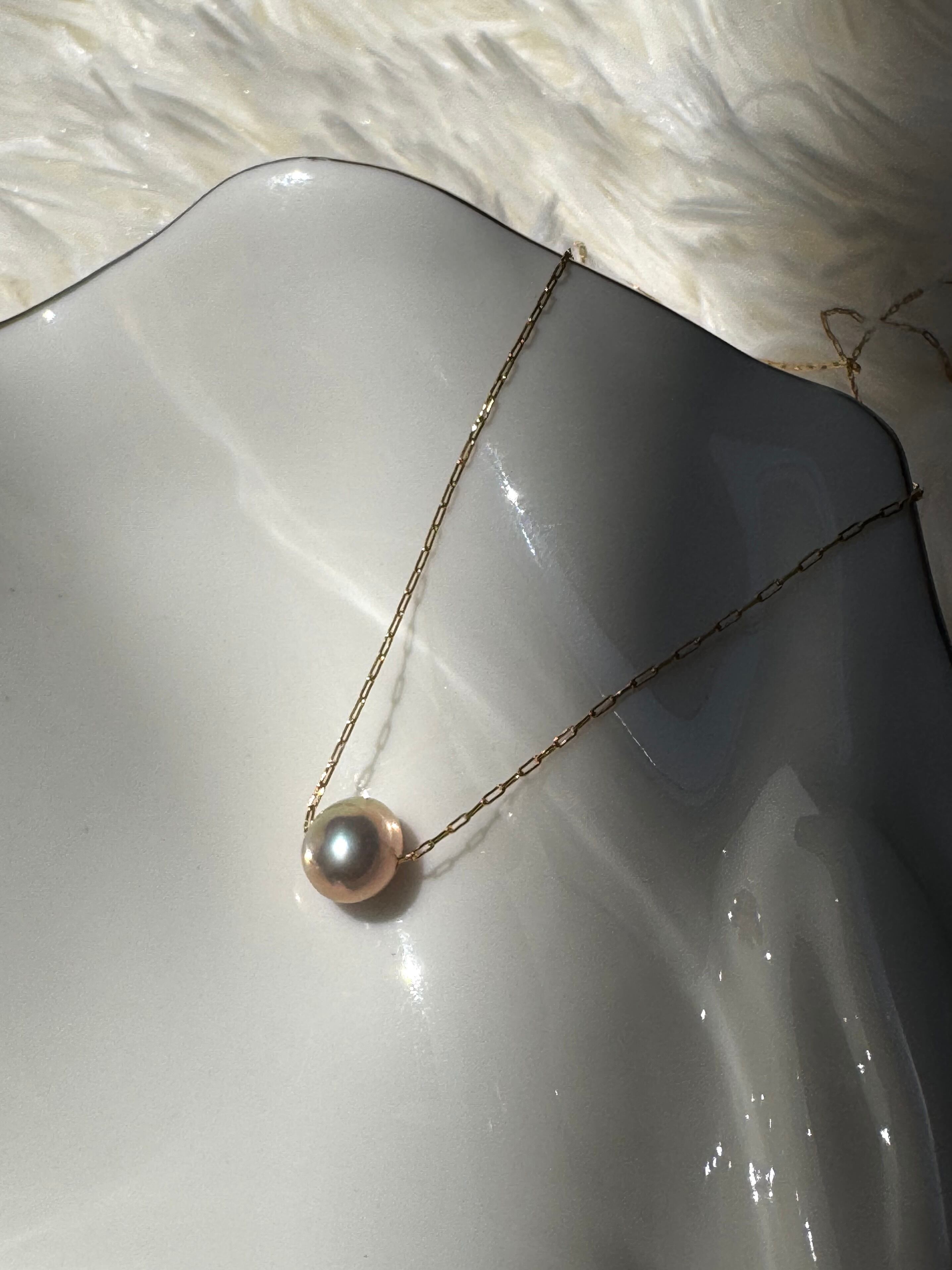 真珠形色:セミバロックパール、天然色オレンジ〜ピンク