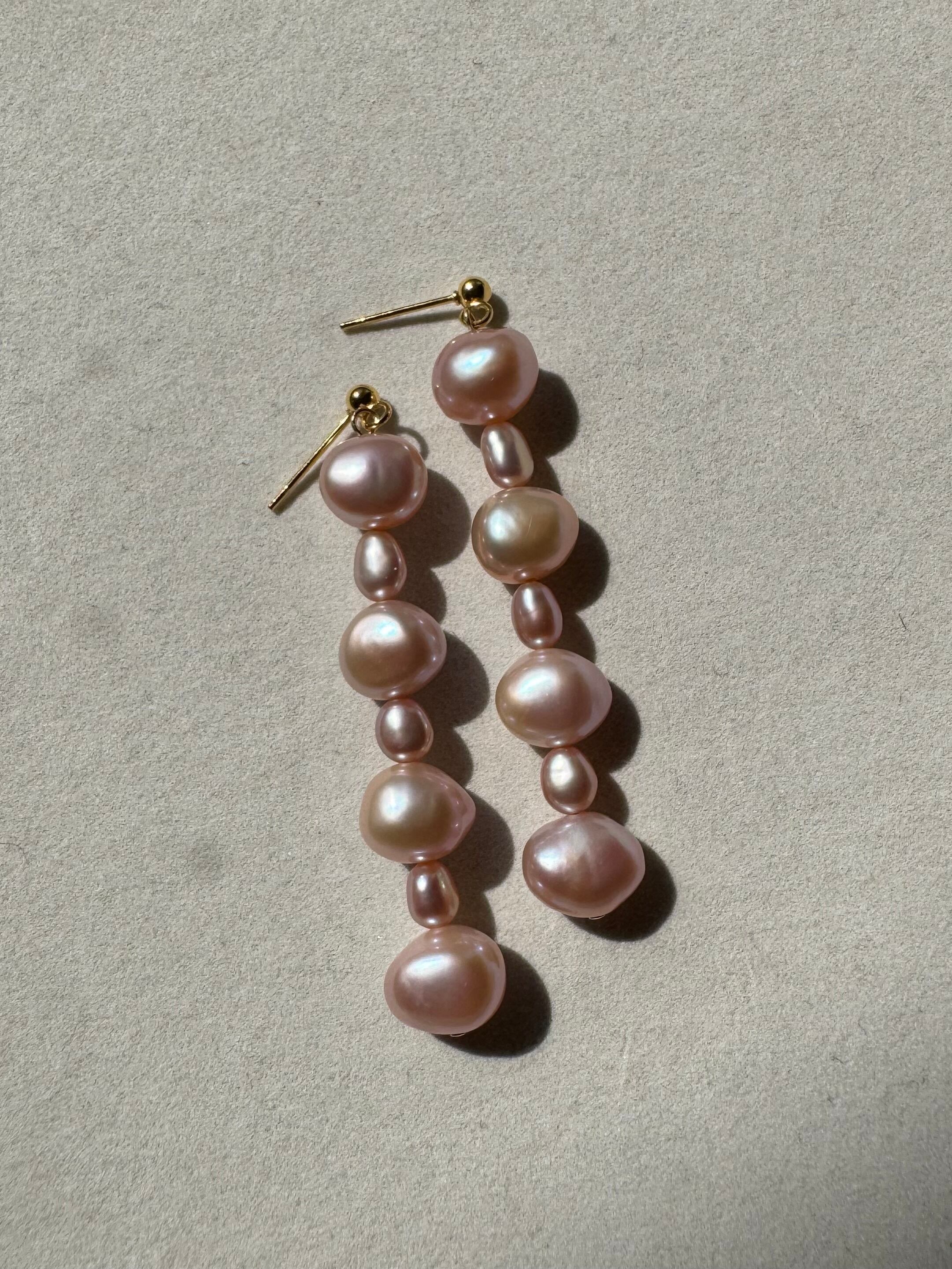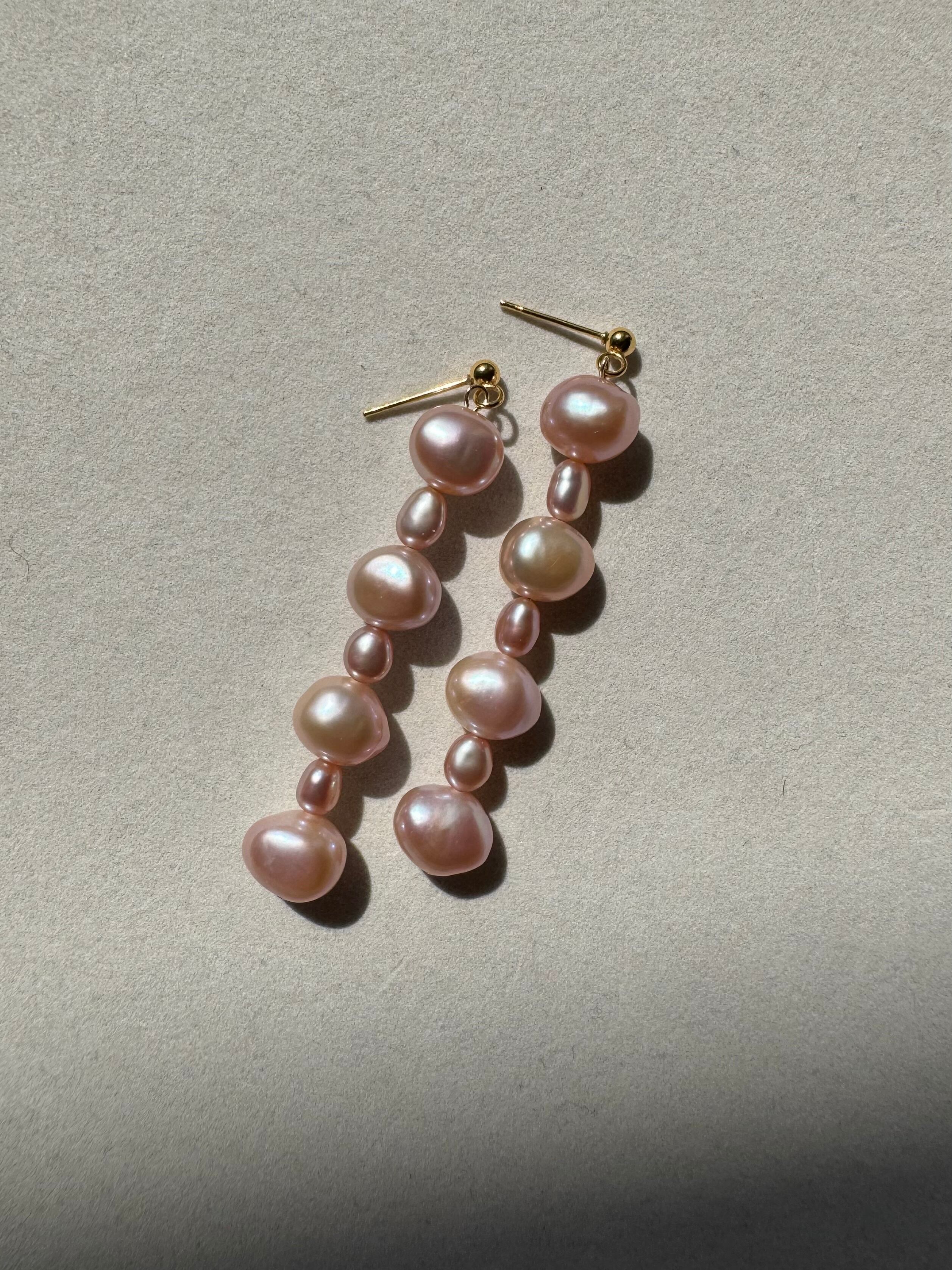 ぷっくりとした粒々感が可愛らしいロングデザインのピアスです。