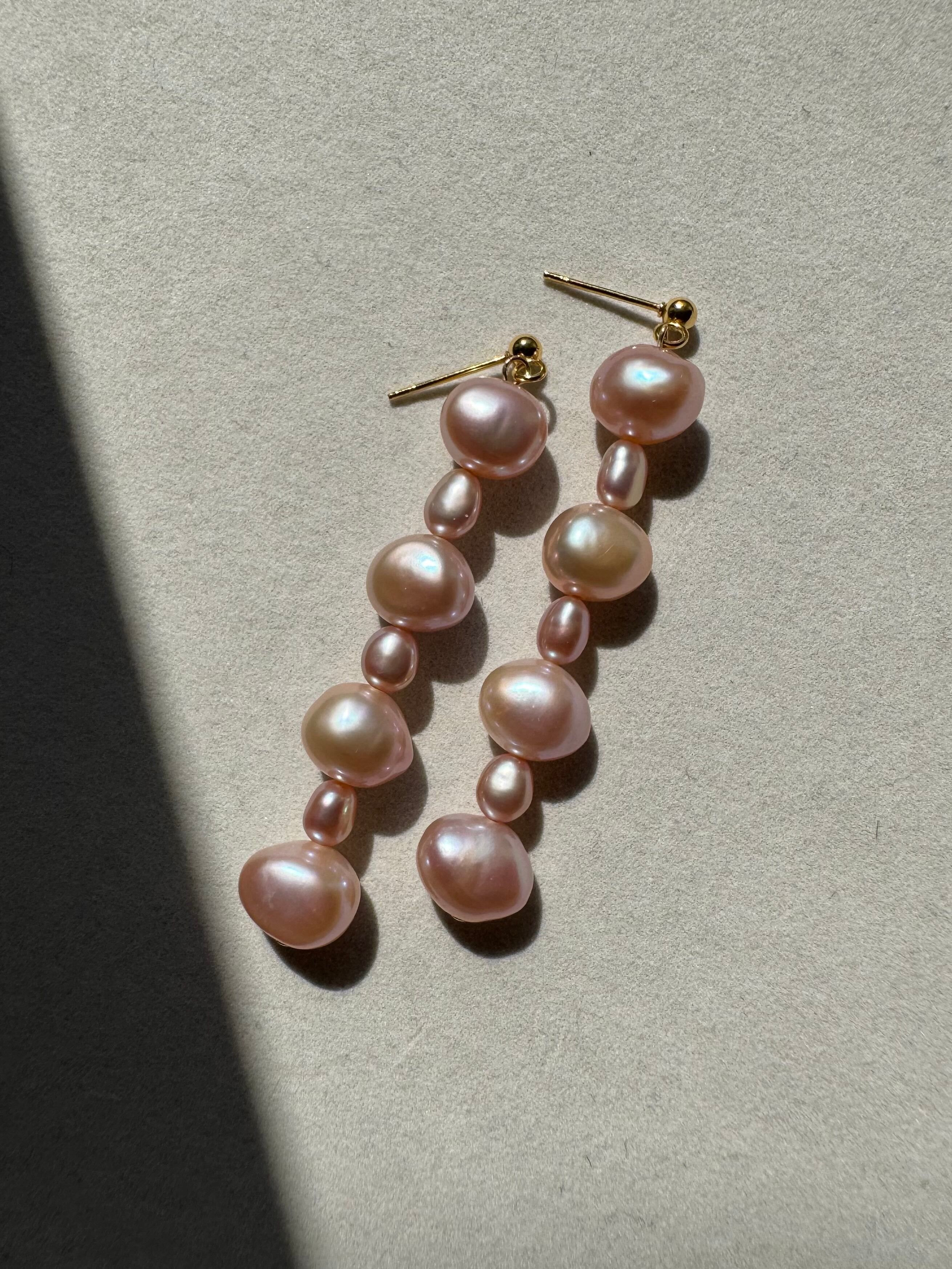 真珠形色:セミバロックパール・ライスパール、天然色ピンク〜オレンジ