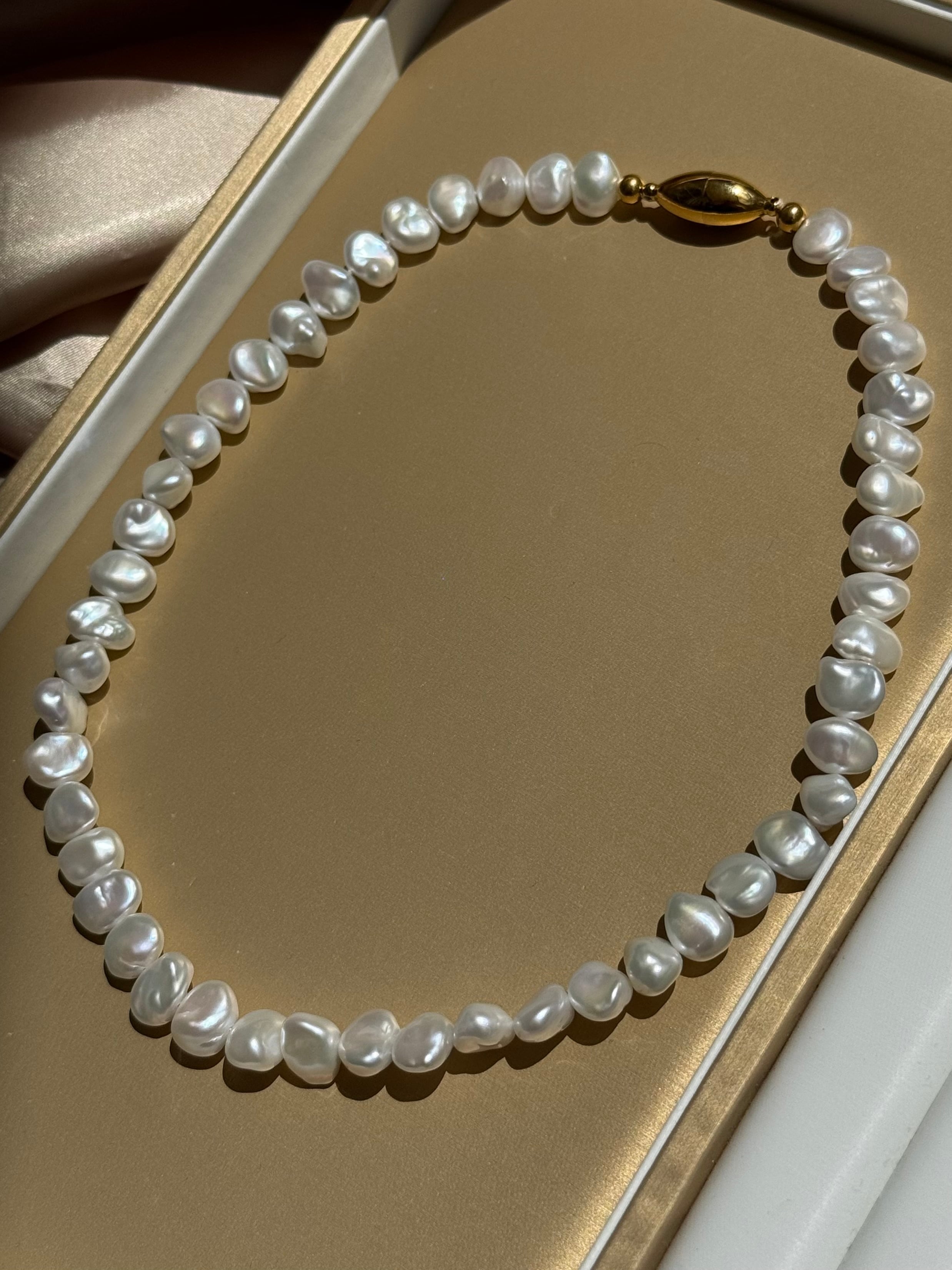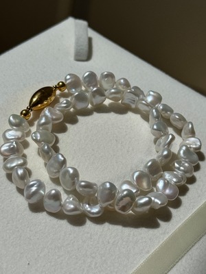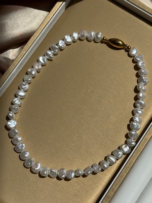 一粒一粒、かたちも輝きも異なる淡水ケシパールを贅沢に繋げたネックレスです。
