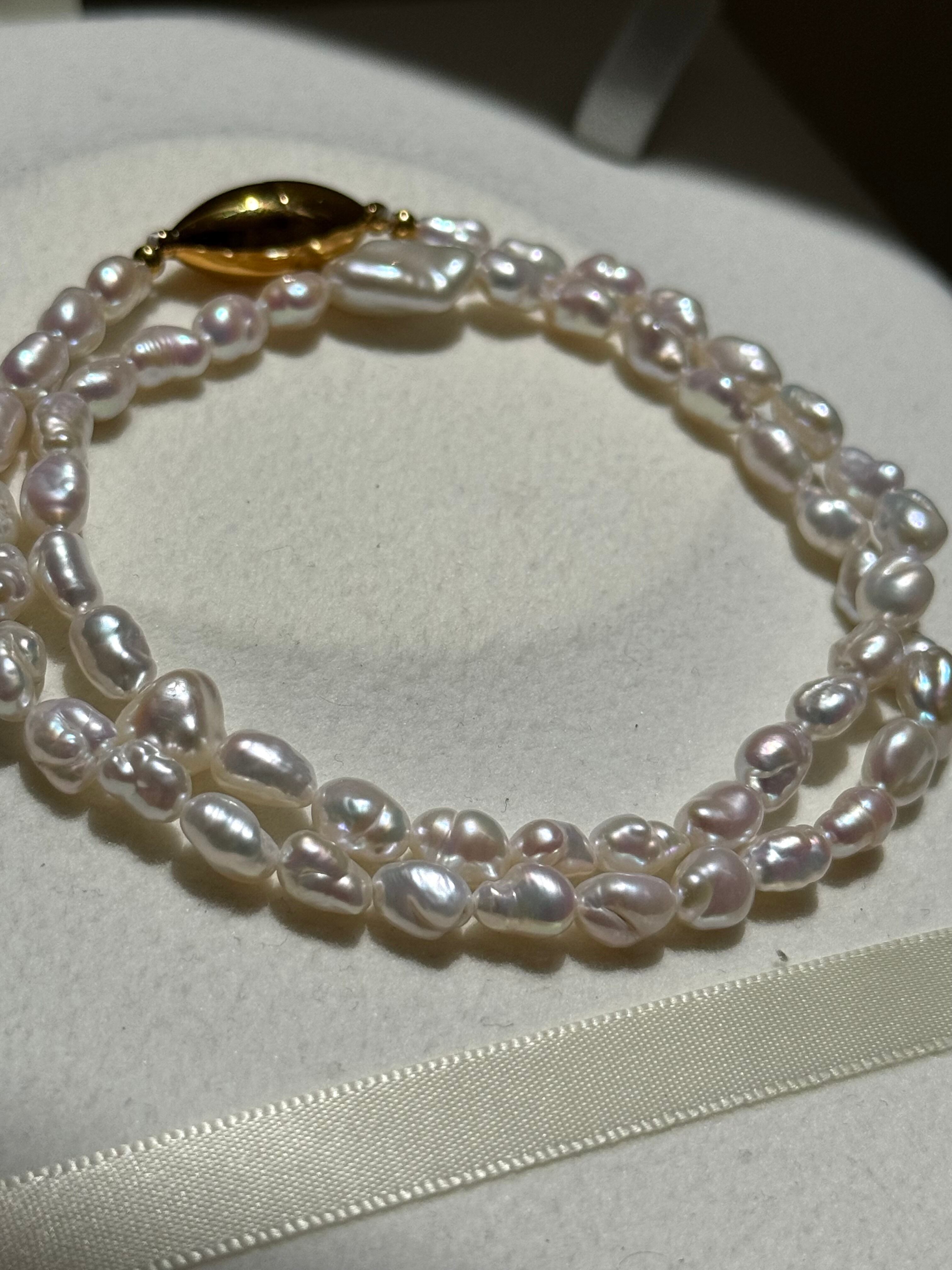 真珠は天然素材の為、写真でははっきり映らないえくぼやシワ感、凹凸や所により小さな傷や色味の違い、グラデーションなどもございます。