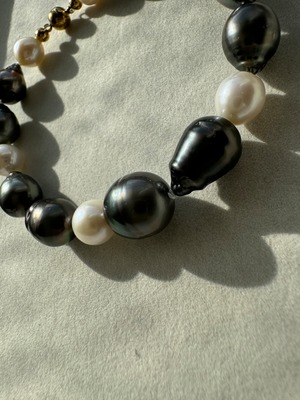 着けるだけでパッとスタイルアップしてくれる黒蝶、南洋真珠独特の存在感。