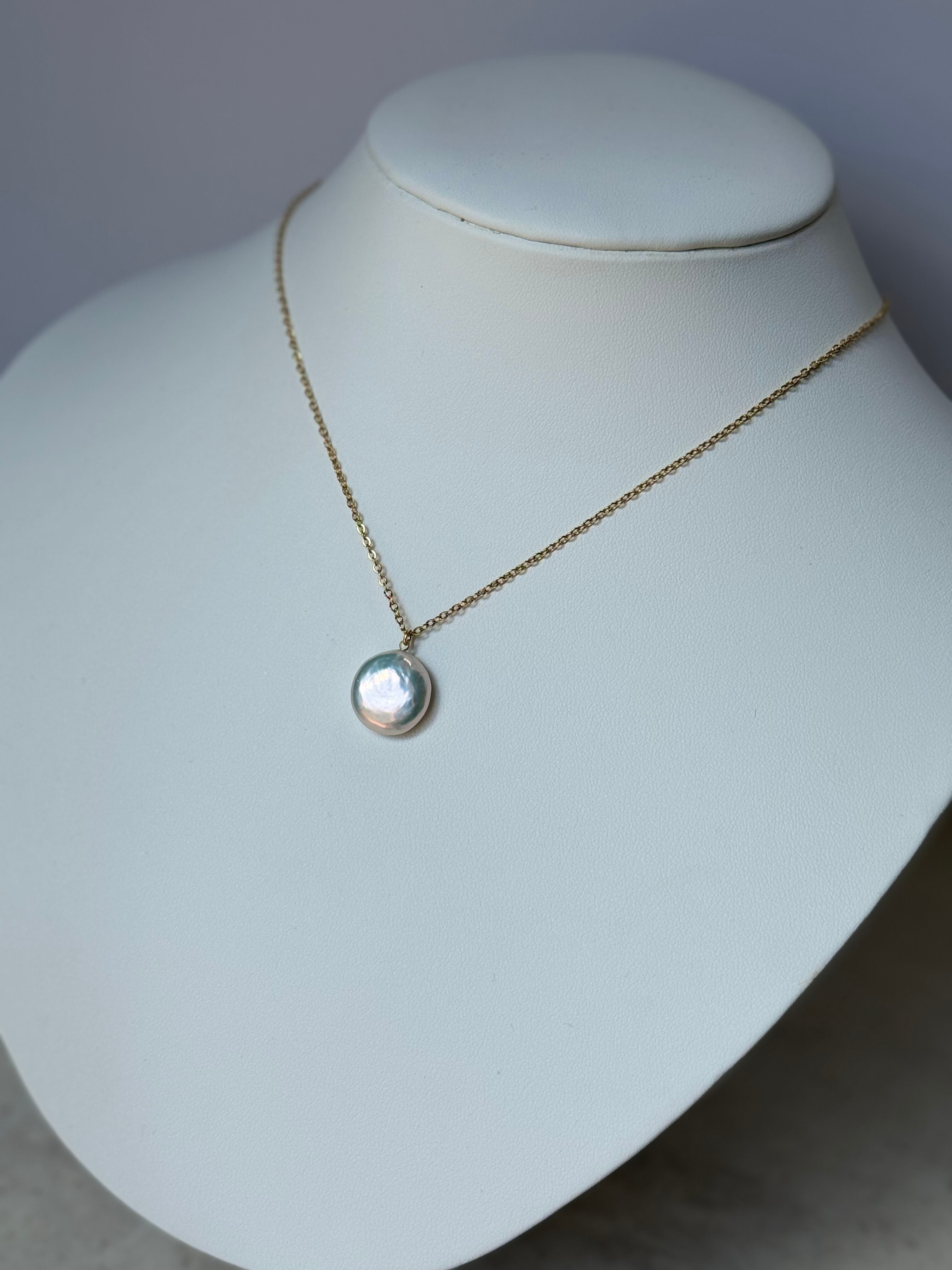 艶っと輝く存在感のあるコインパールは、ボリュームがありますがラウンドと違い平らな形をしているため着けやすさも抜群です。