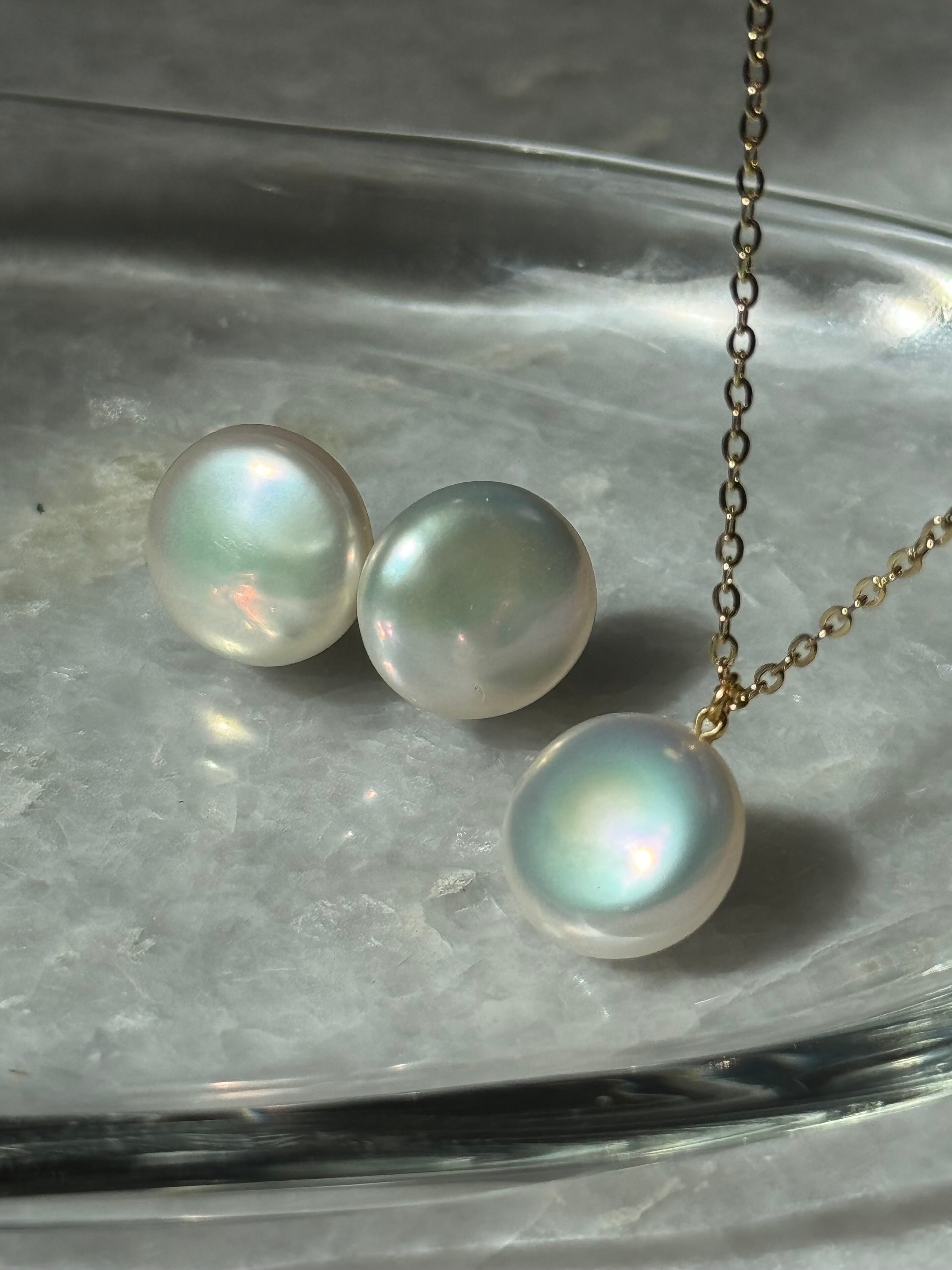 真珠形色:コインパール、天然色ホワイト(グリーンブルー系)