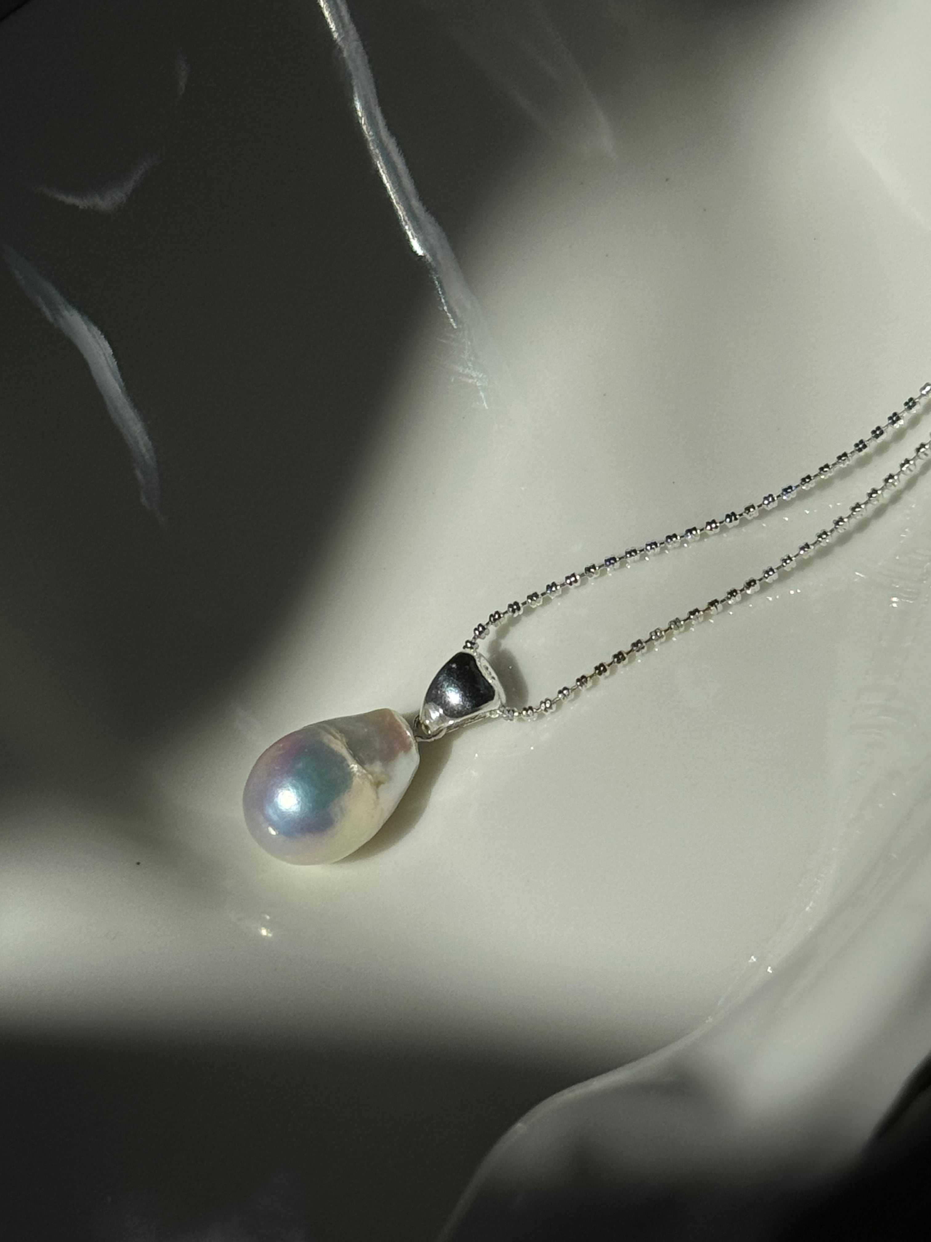 真珠形色:バロックパール、天然色ホワイト(ブルーピンク系)