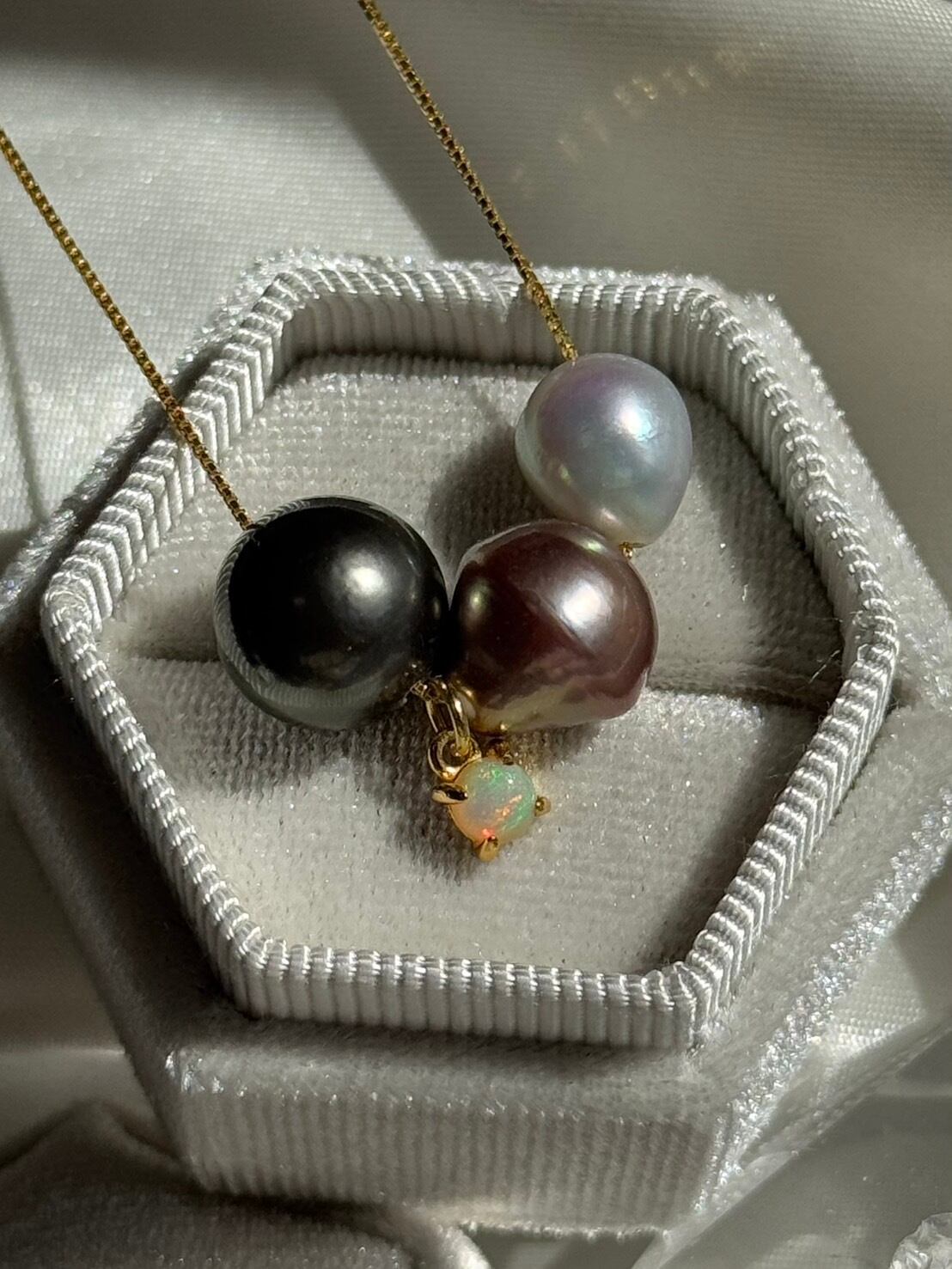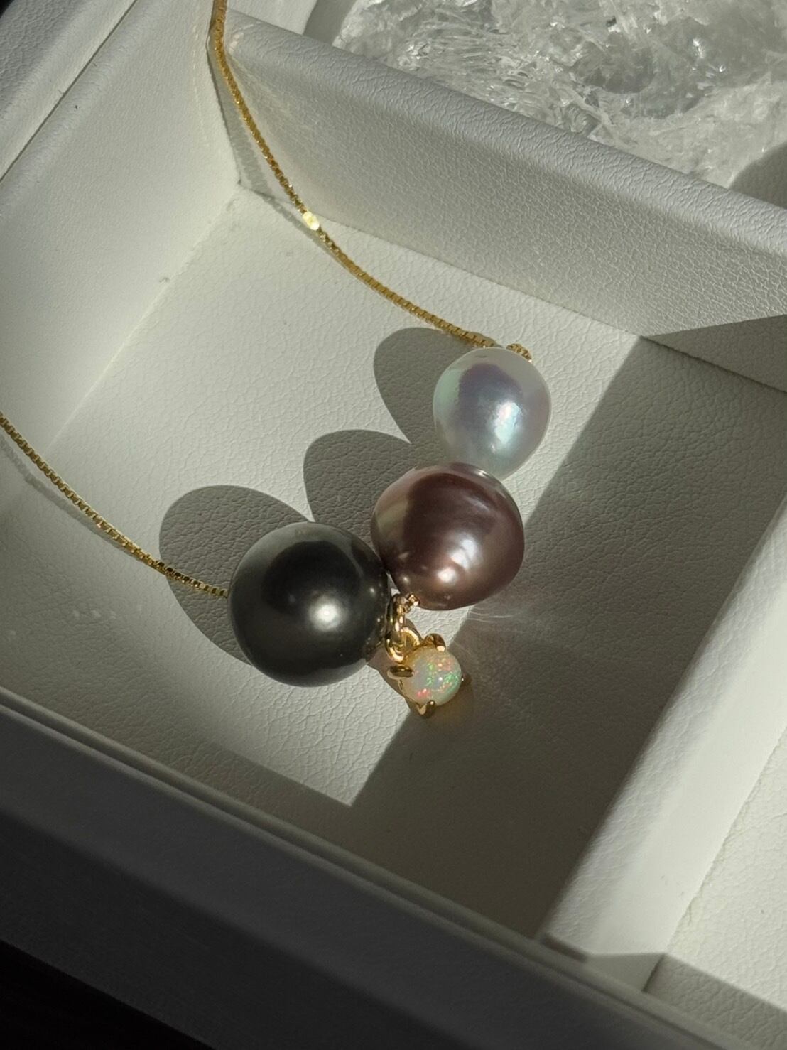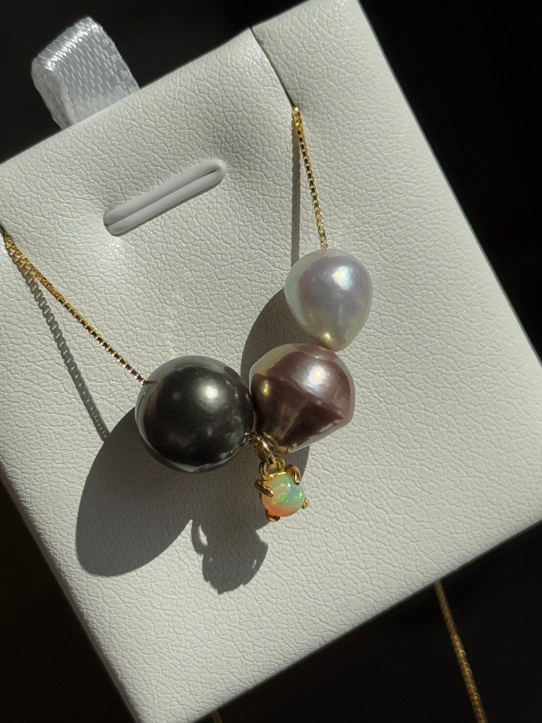 その中でも美しく輝くこだわりのオパールルースと、艶やかでカラフルな真珠を組み合わせた、あなただけのオンリーワンネックレスです。