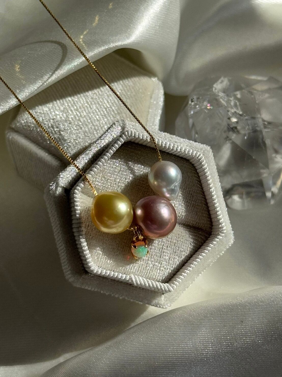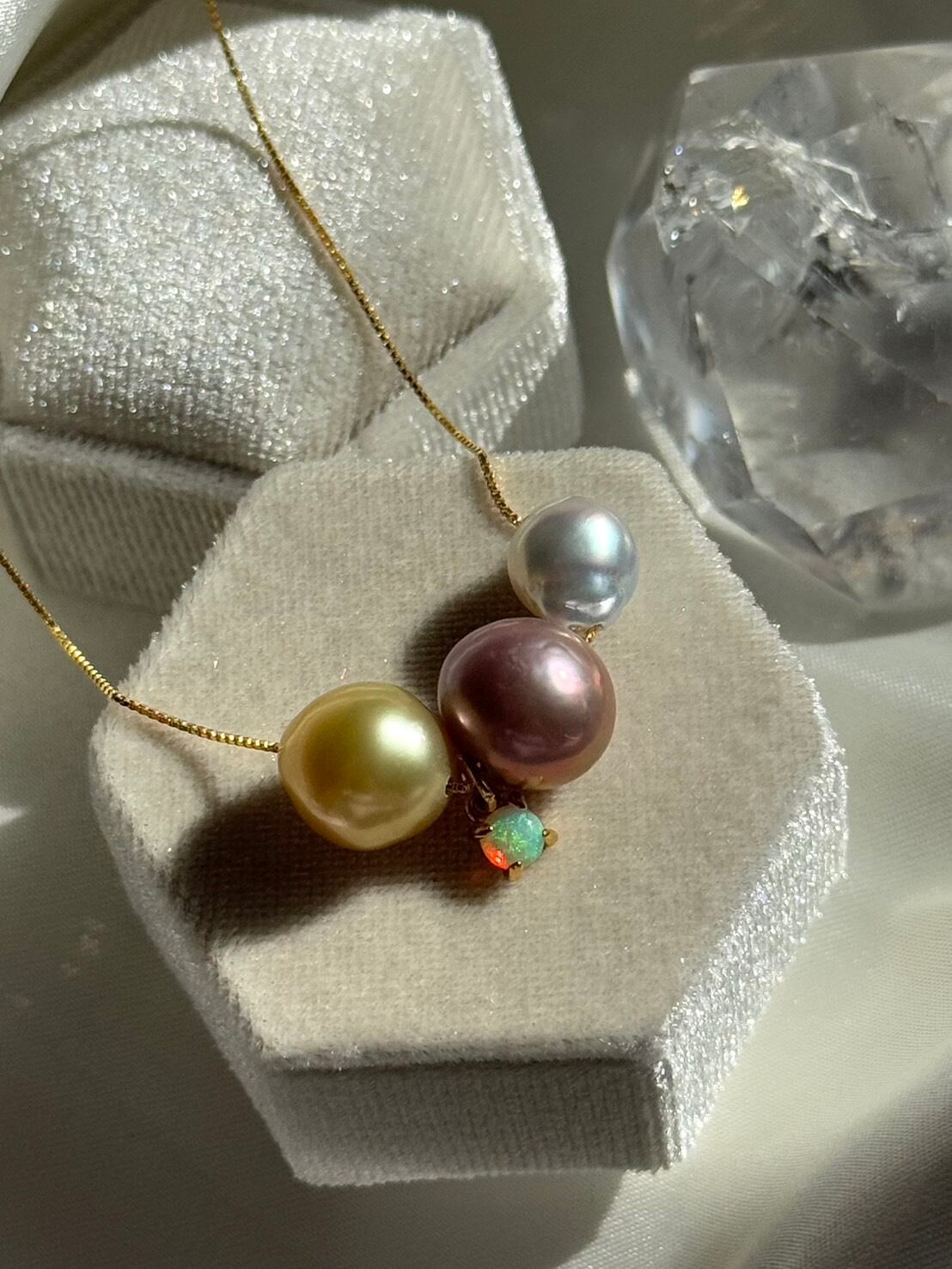 その中でも美しく輝くこだわりのオパールルースと、艶やかでカラフルな真珠を組み合わせた、あなただけのオンリーワンネックレスです。