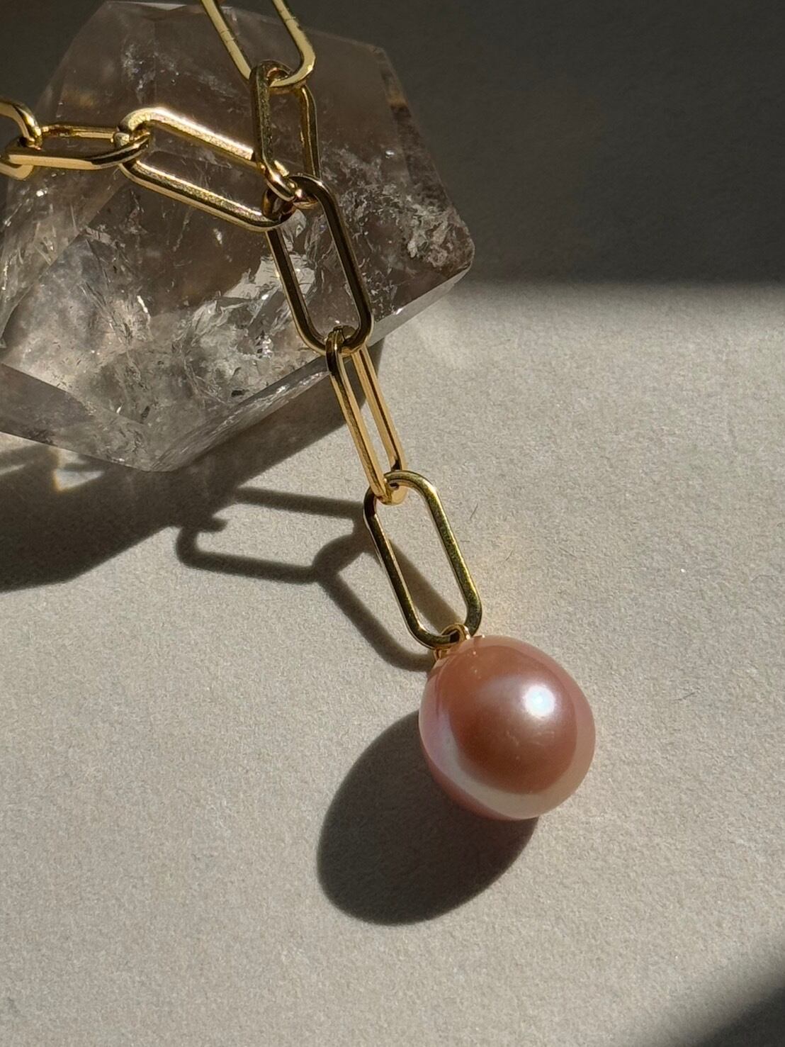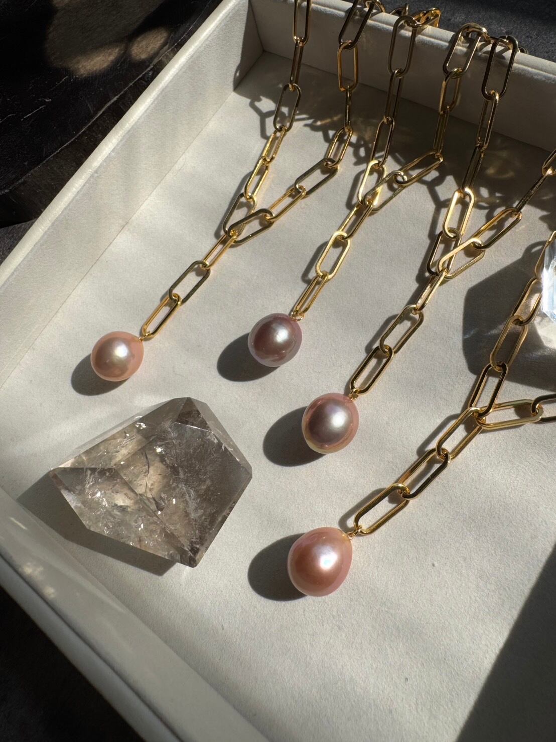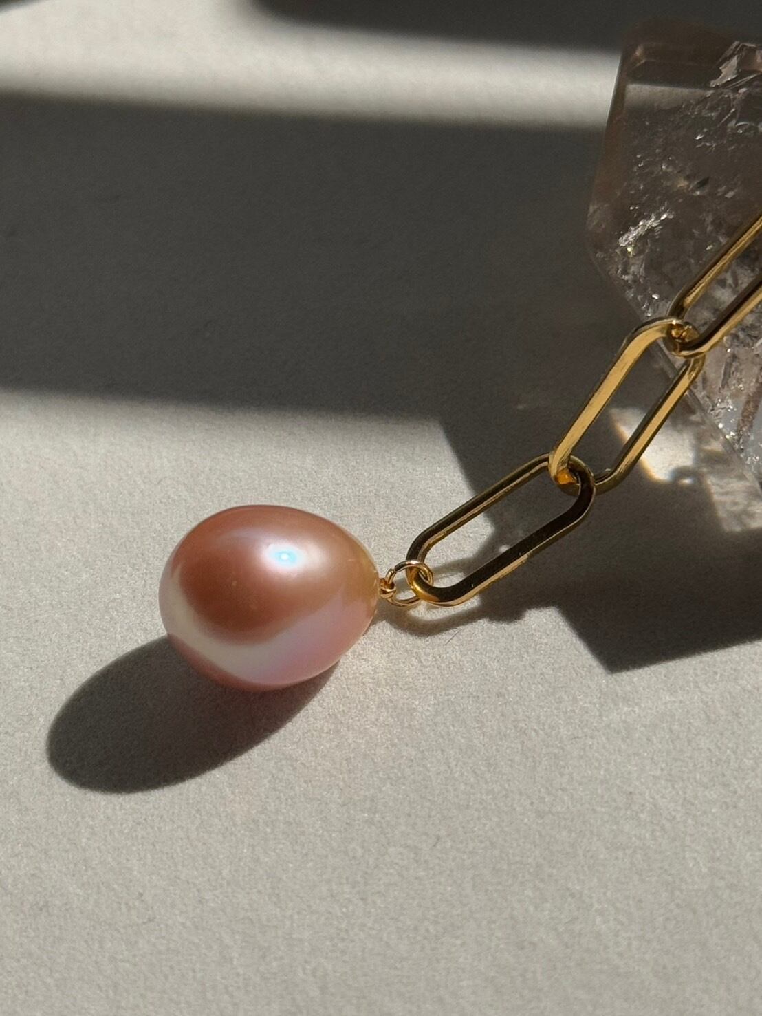 一色だけでなく、光の当たり方や場所によって色合いが変化する表情豊かなパールです。