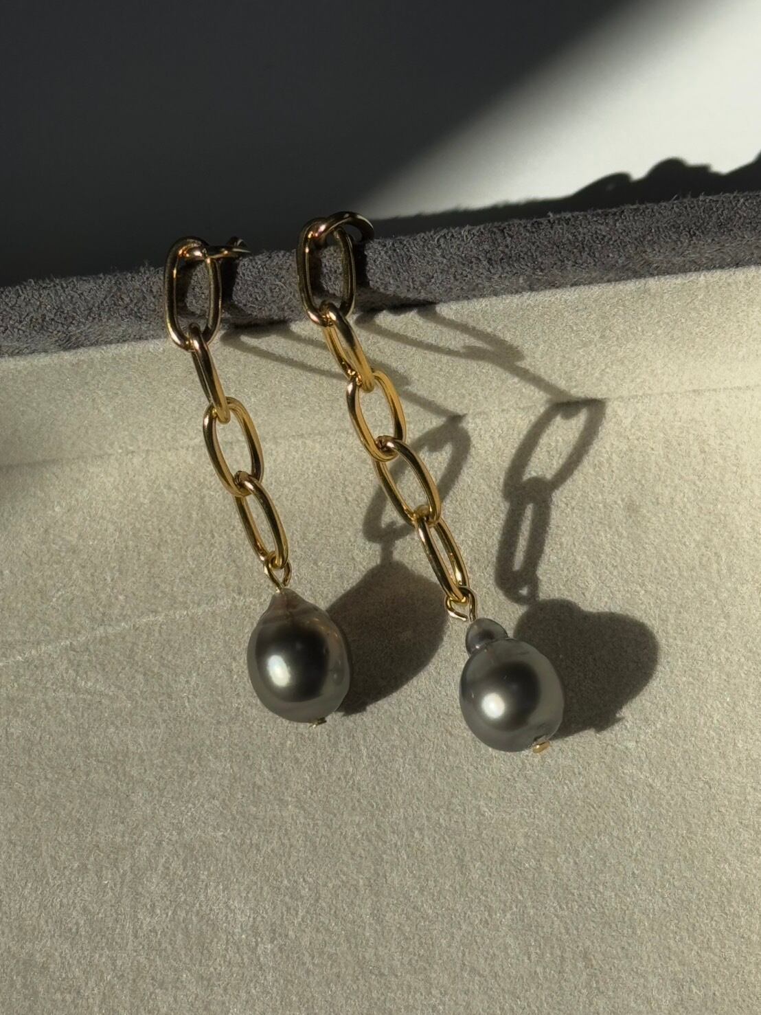華やかなチェーンスタイルの黒蝶真珠ピアス!