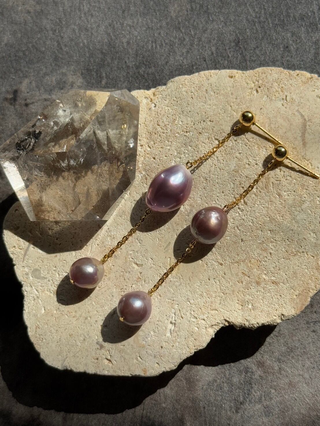 沢山の中からイメージのピアスになるよう、ビビッとくるまで試行錯誤して、巡り合わせたペアのパールでお仕立てした唯一無二のピアスです。